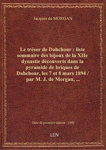 Le trésor de Dahchour : liste sommaire des bijoux de la XIIe dynastie découverts dans la pyramide de Jacques de MORGAN Télécharger Livres Gratuits